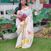 Hand-Painted/ Hand-Embroidered Kerala Saree Adorned With Delicate Wildflower Motifs