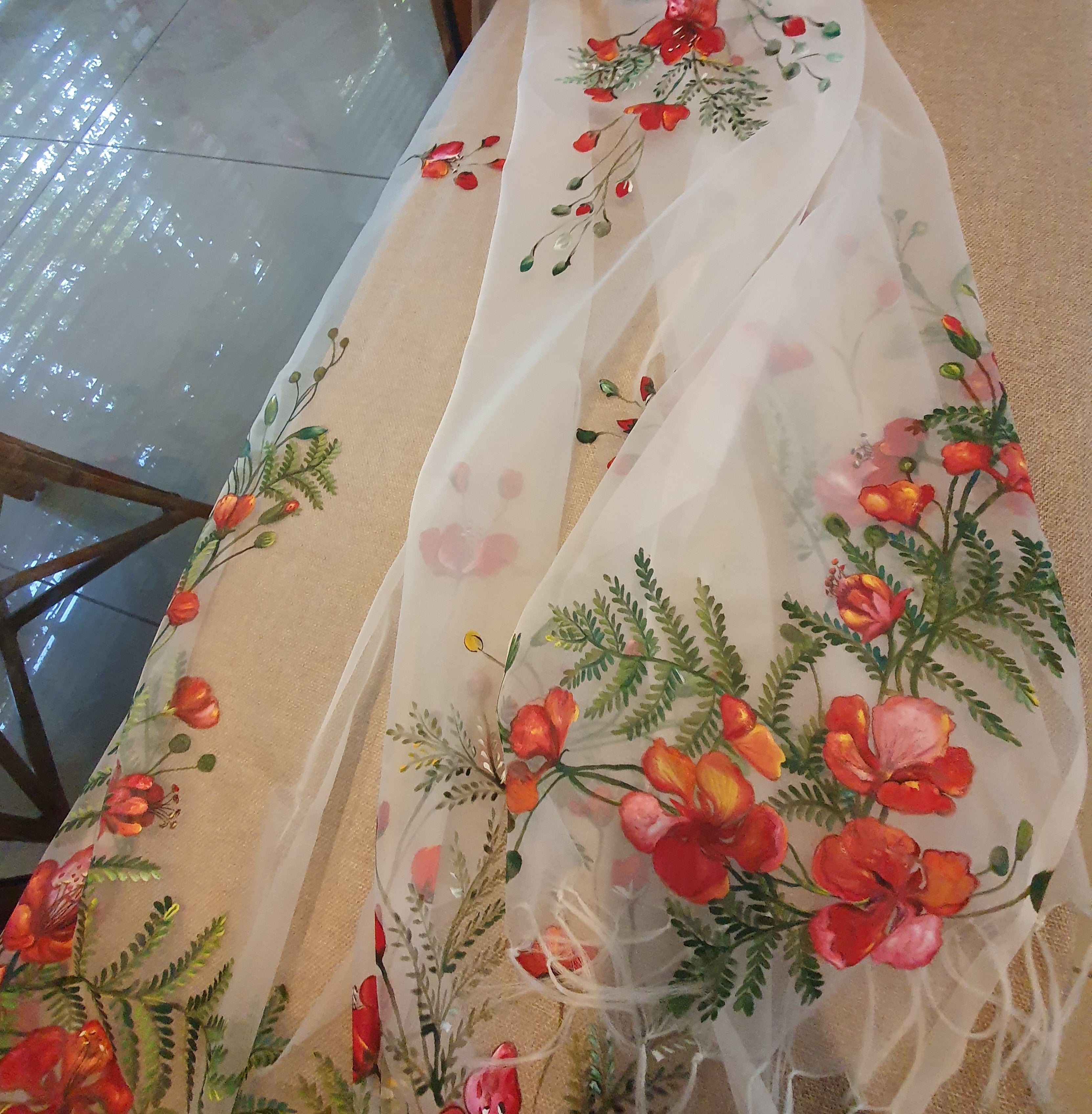 Folk Art Themed Hand-Painted Tusser Silk Dupatta
