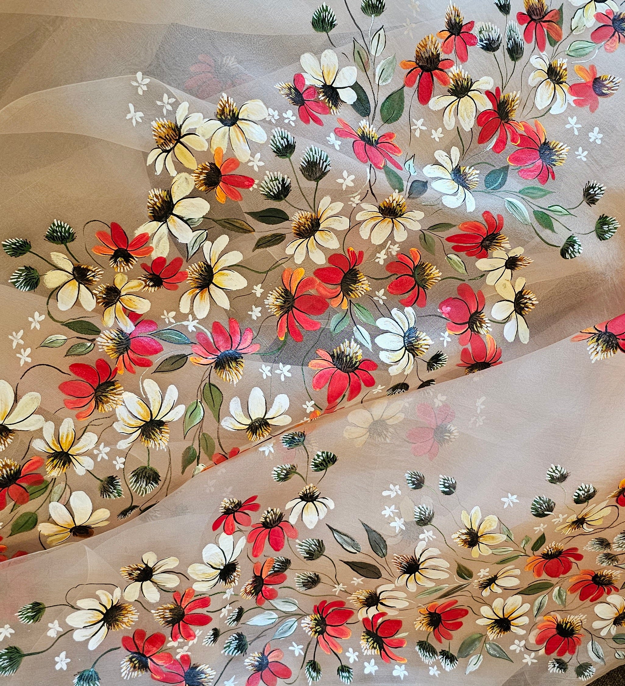 Hand-painted Raw cotton blouse piece in Deep Violet color Fabric