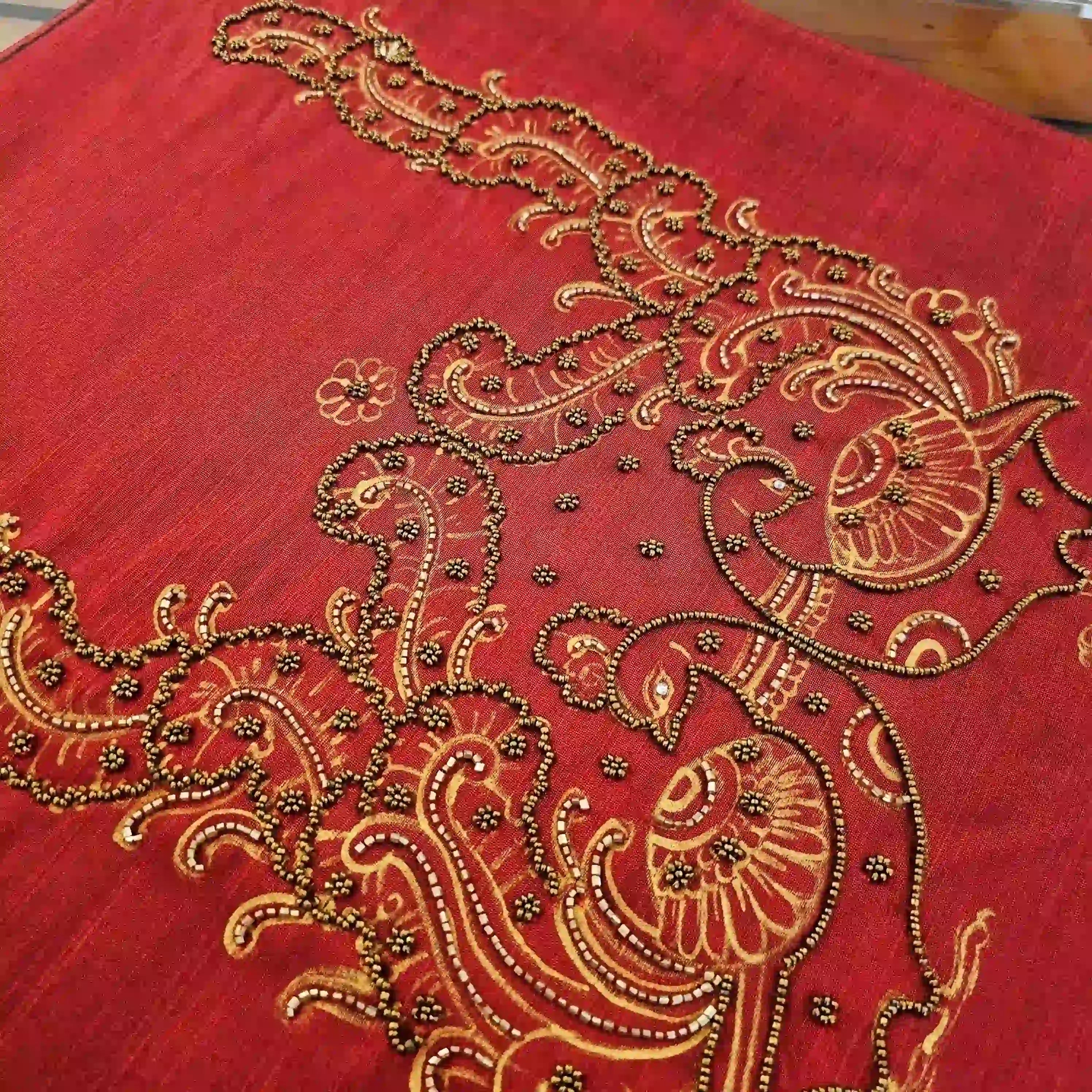 Hand-Painted Kerala Kasavu Cotton Kurti Fabric