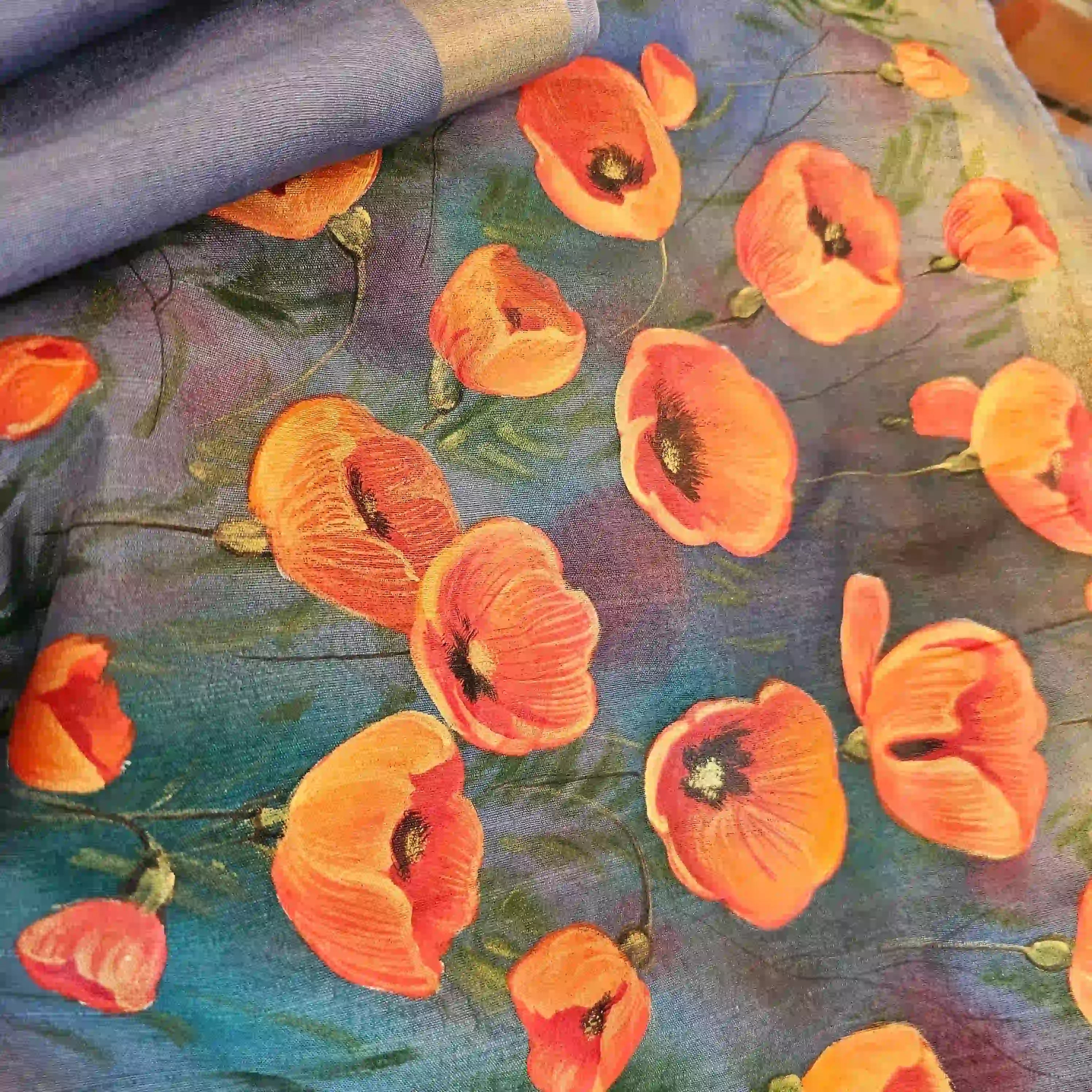 Graceful Hand-Painted Gulmohar Blooms On Soft Mal Chanderi Saree
