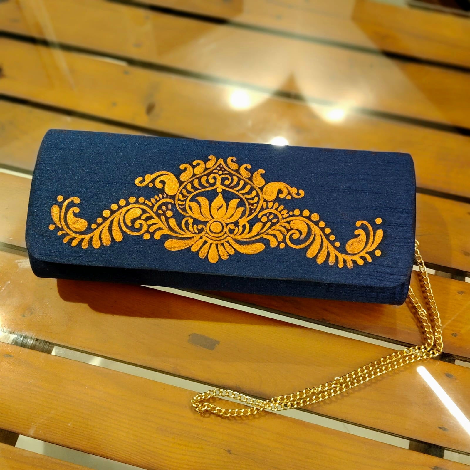 Features a detachable metal handle that doubles as a hand clutch. Spacious enough to accommodate your mobile and personal items, with a small interior pocket .