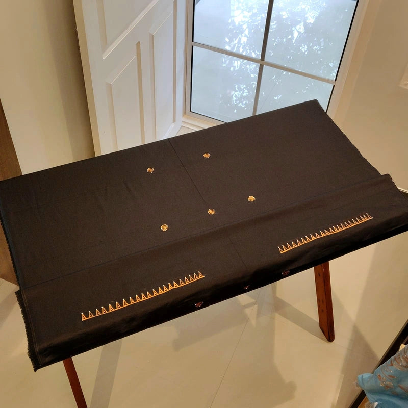 Hand-painted black Cotton kurti with pretty motifs painted on yolk along with hand-painted designs on the front, back, and sleeves. Ideal for summer.