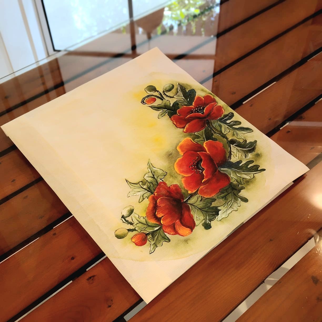 Hand-painted Poppy flowers fabric patch crafted on soft handloom cotton — easy to stitch, comfortable to wear, and perfectly durable on your fabric.