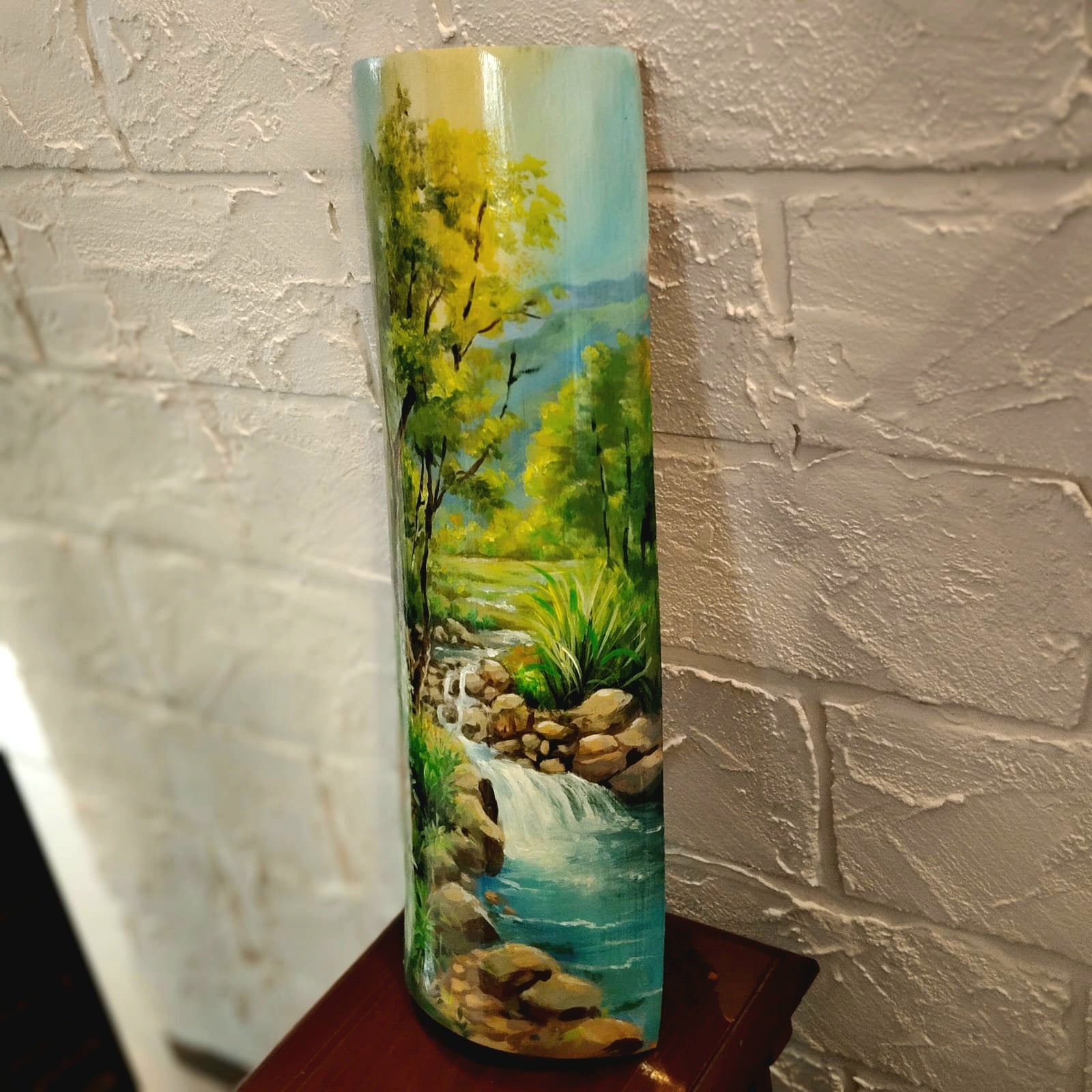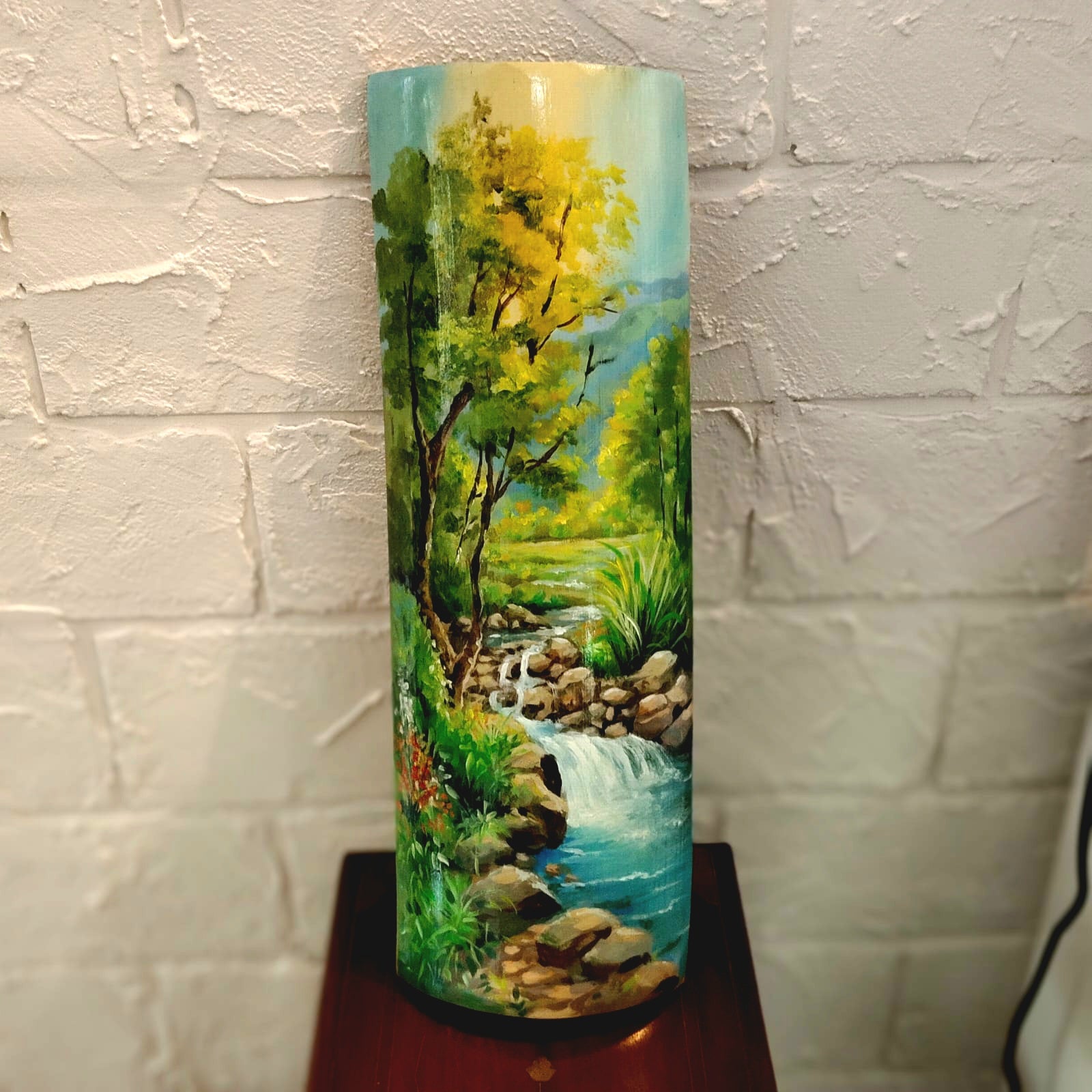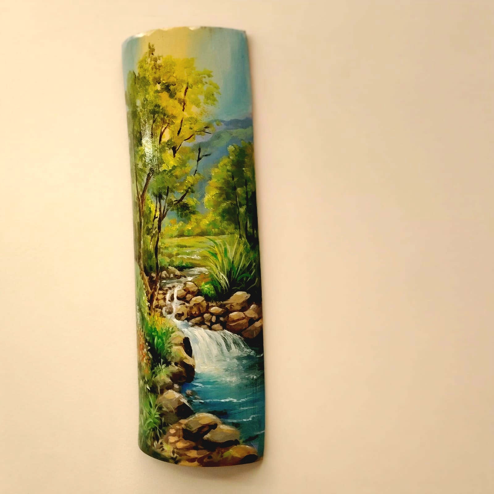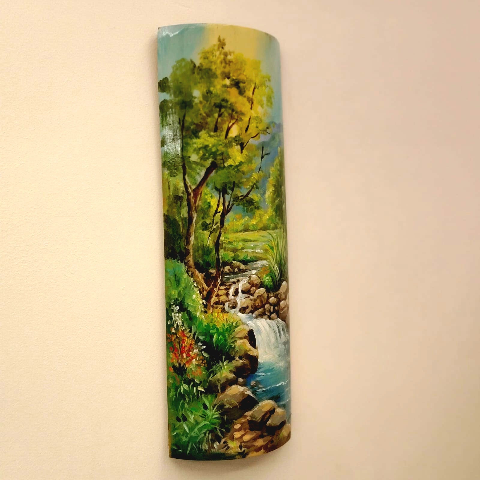 Beautiful nature has inspired this hand-painted bamboo art. Featuring serene natural elements, it's perfect for adding a peaceful touch to your home or gifting to a loved one.