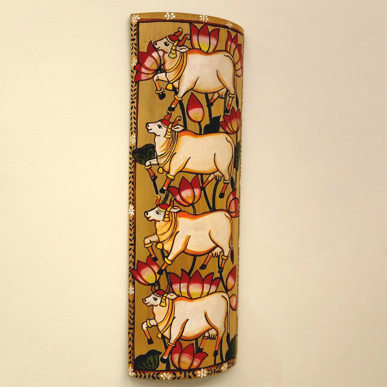 Decorative Bamboo Panel With Hand-Rendered Pichwai Artwork