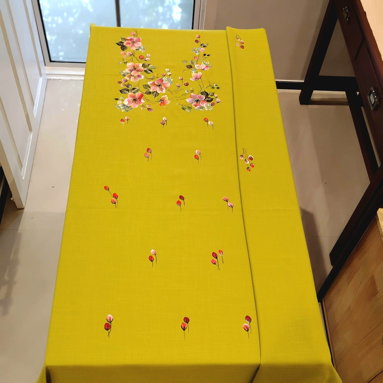 Delicately Hand-Painted Kurti Fabric Adorned With Blooming Floral Motifs.