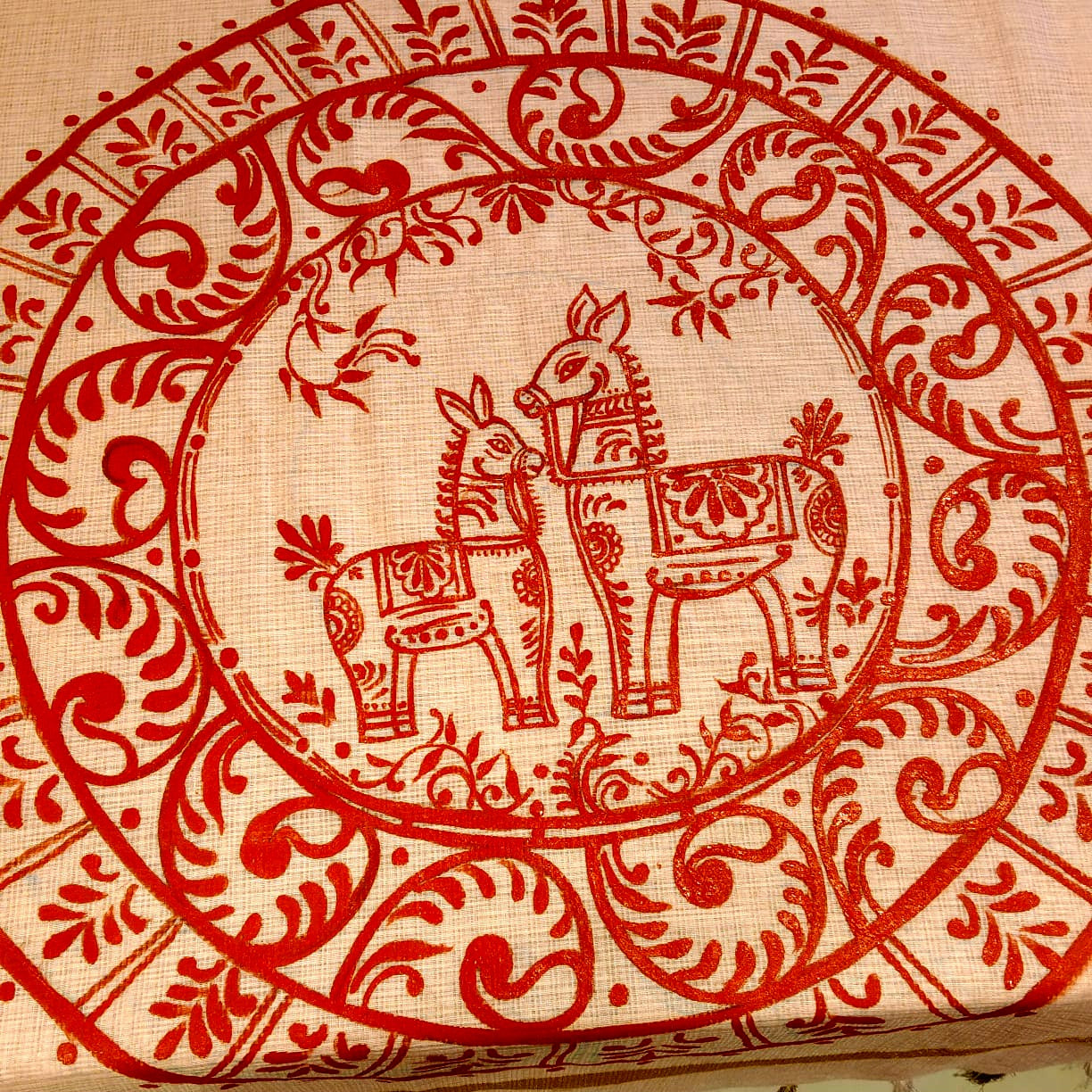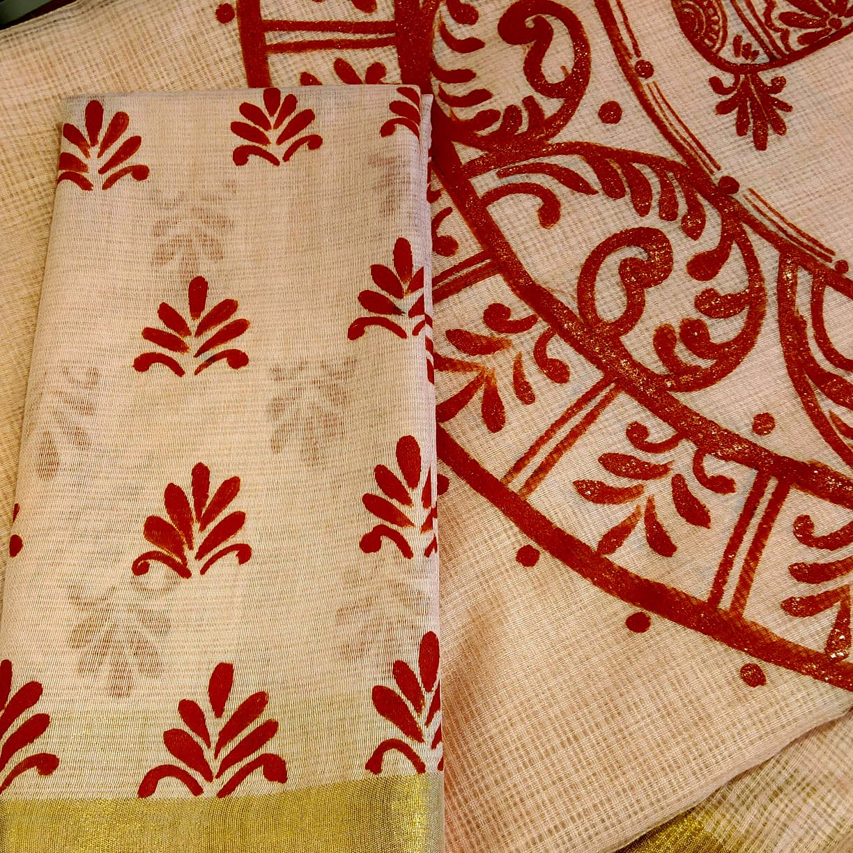 Graceful Alpona motifs Hand-Painted On Soft Kota Doria Saree