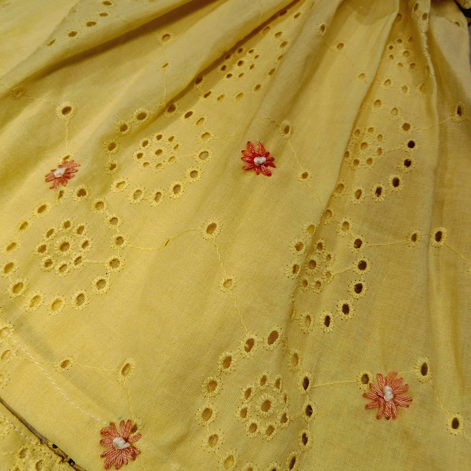 Charming pure cotton Hakoba frock for a 1 to 1.5-year-old baby girl, enhanced with delicate hand embroidery for added elegance.