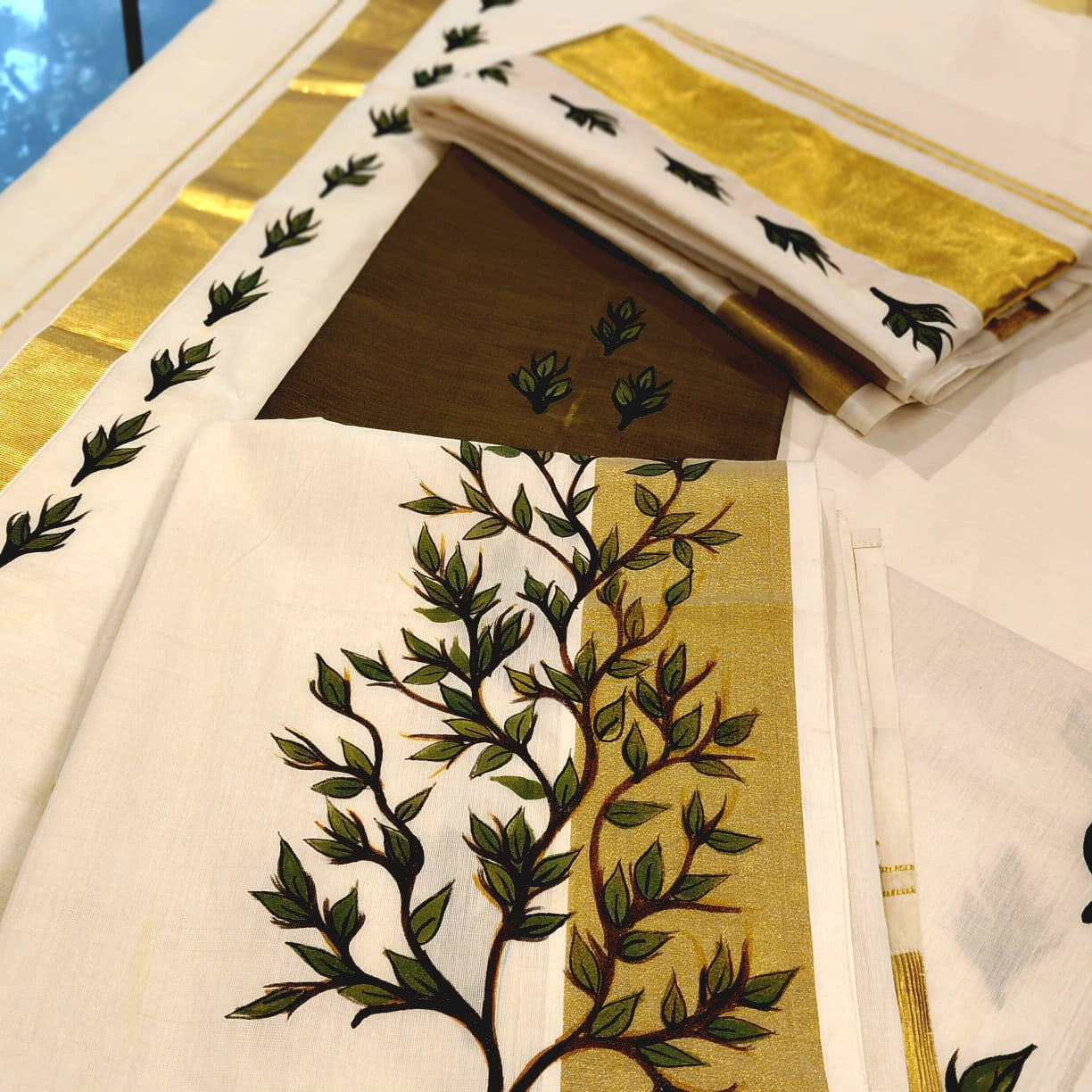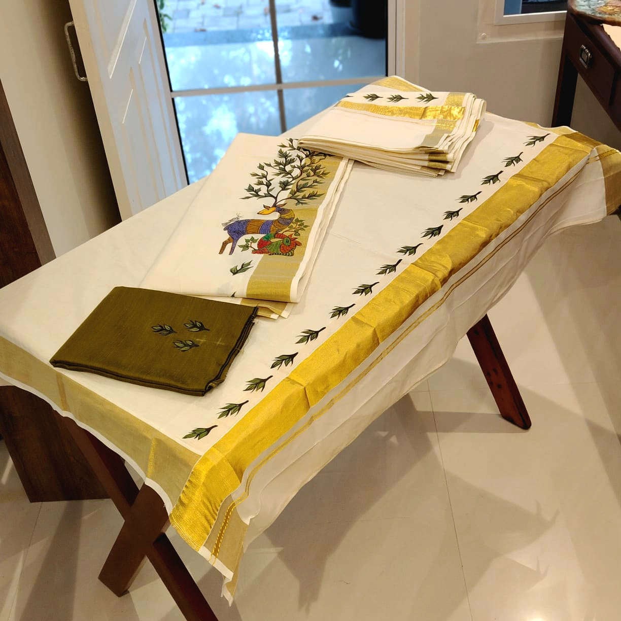 Hand-Painted Kerala Set Mundu And Mens Double {Dhoti} Combo