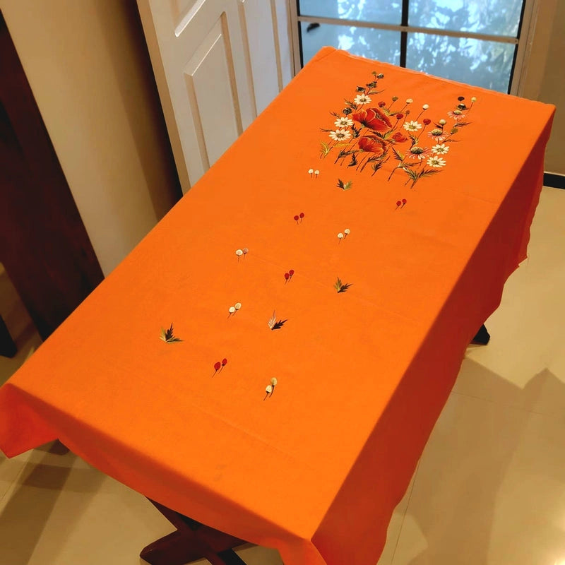 Hand-painted soft cotton kurti fabric with elegant floral motifs on the yoke and body. The back side also carries matching flower designs for a complete, graceful look