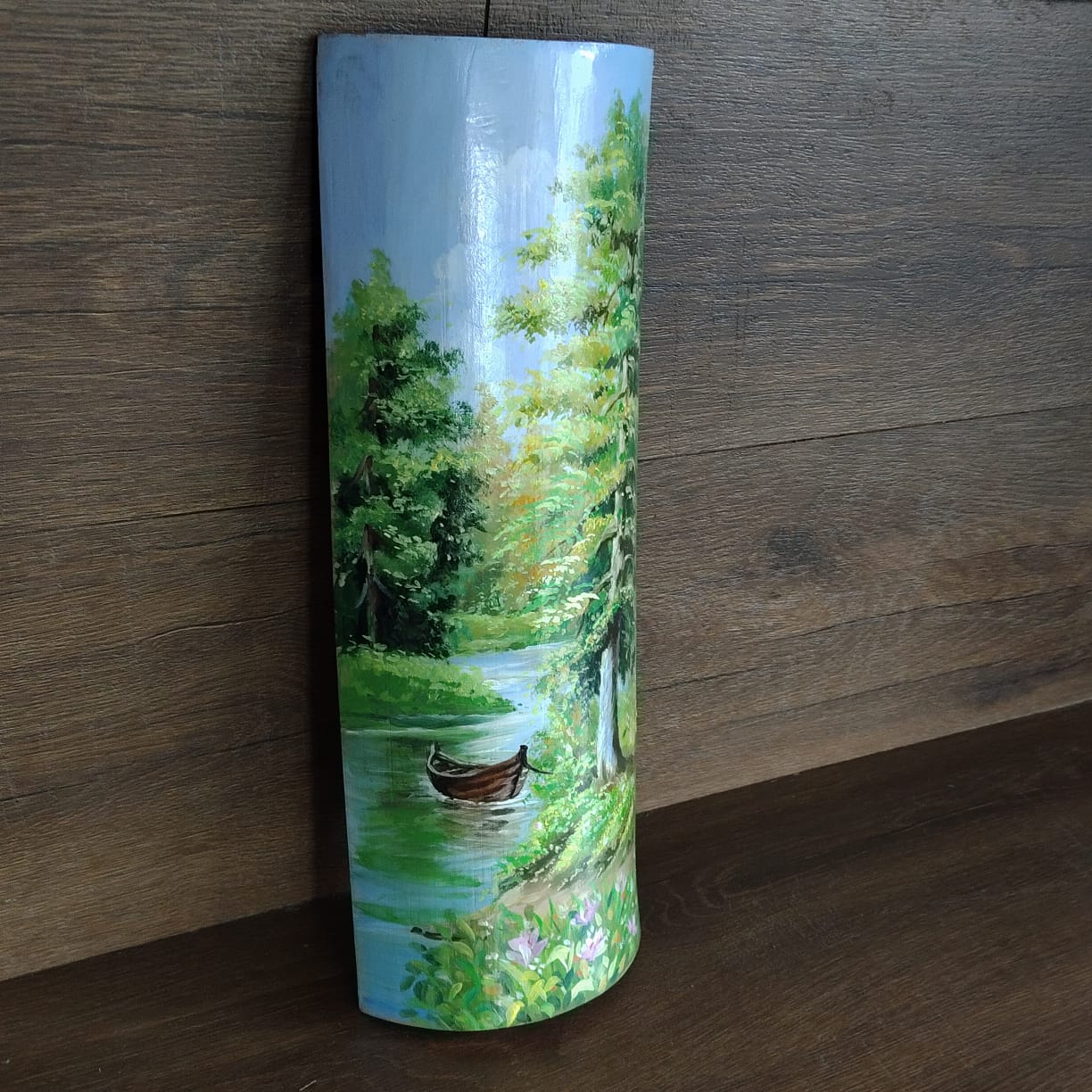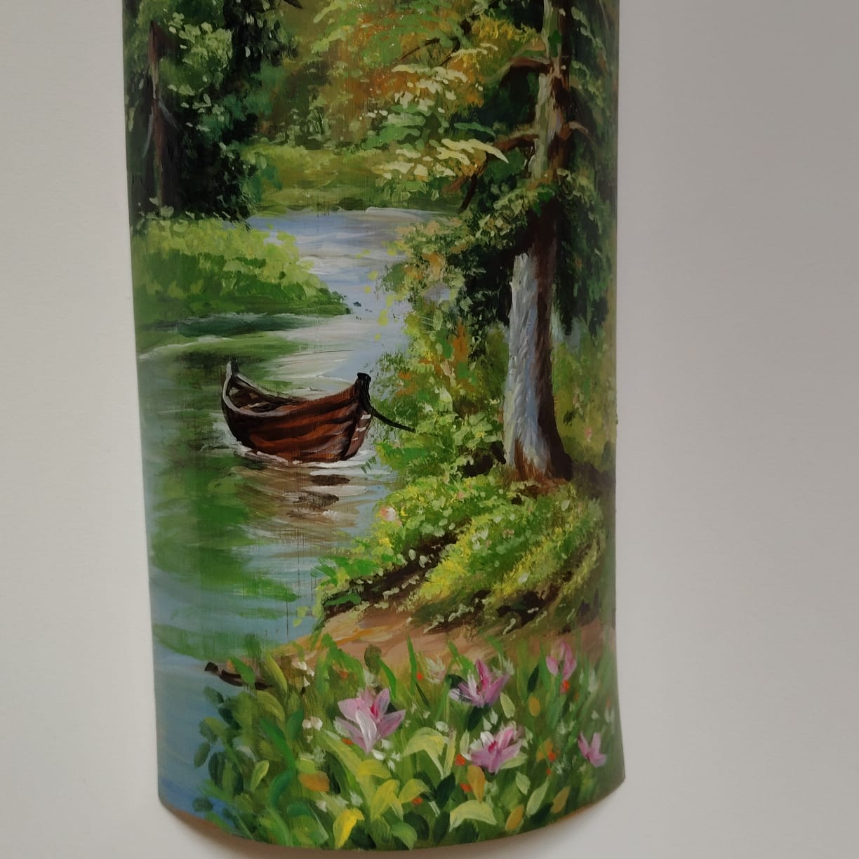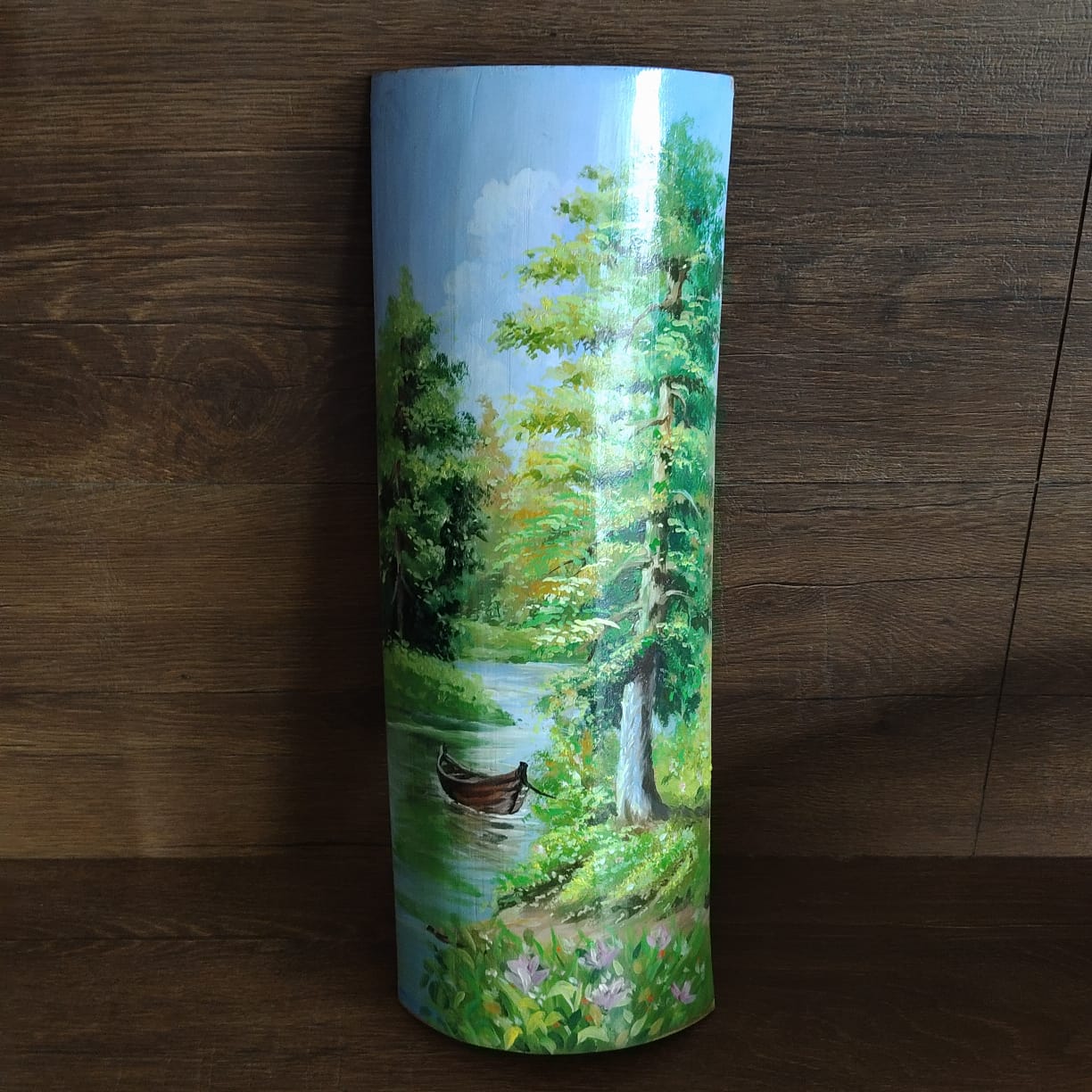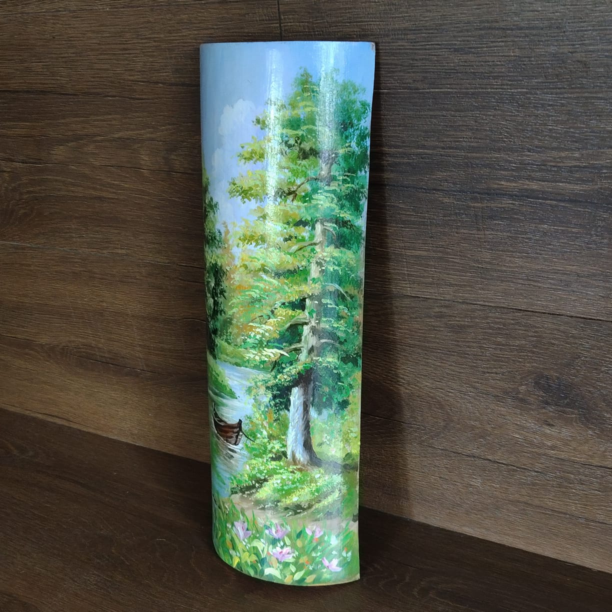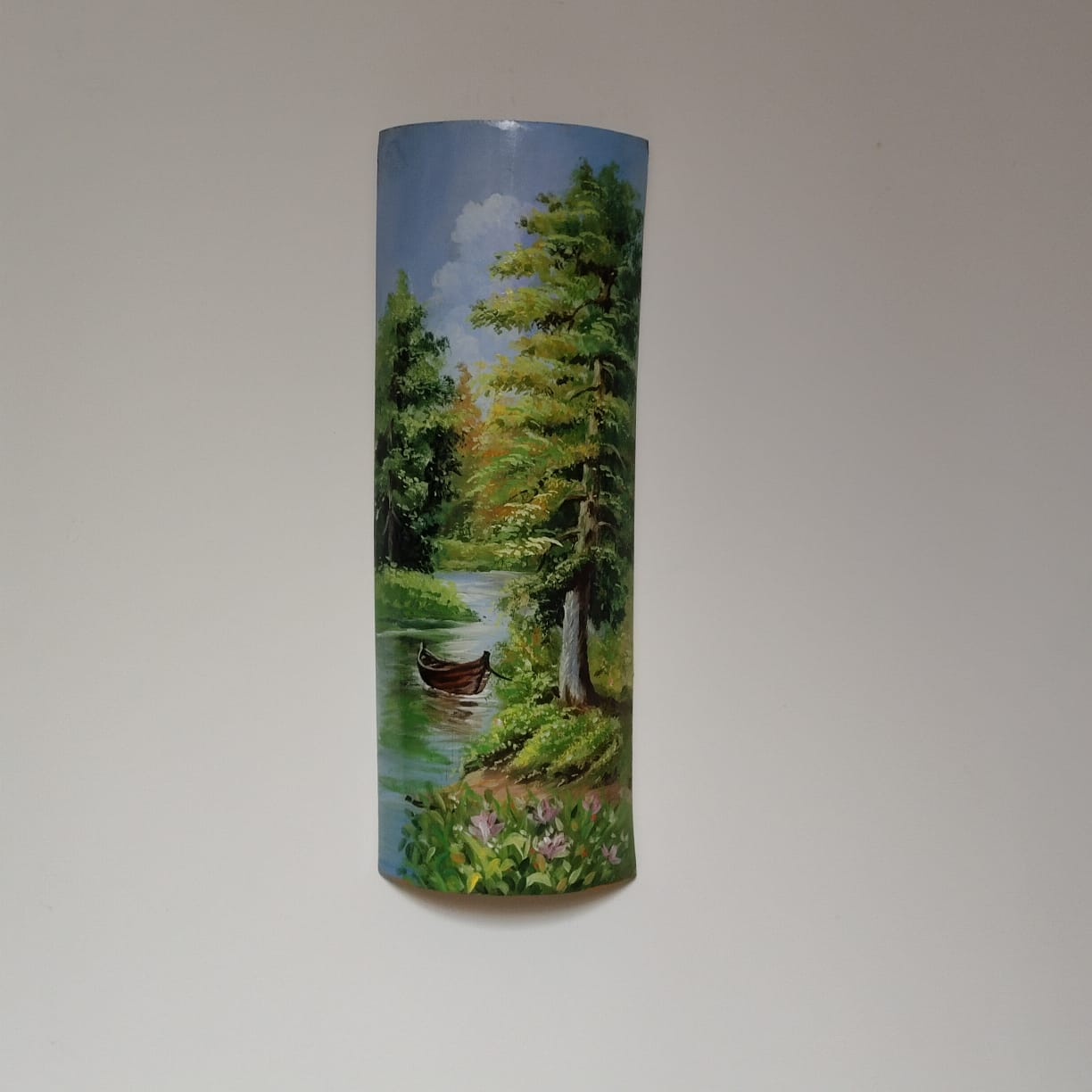 Beautiful nature has inspired this hand-painted bamboo art. Featuring serene natural elements, it's perfect for adding a peaceful touch to your home or gifting to a loved one.