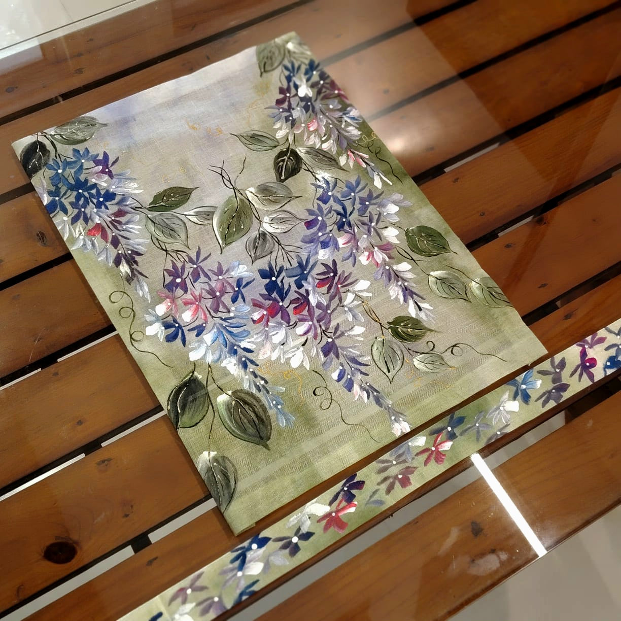 Ready-to-stitch Floral Art Patch, Painted By Hand On Soft Cotton