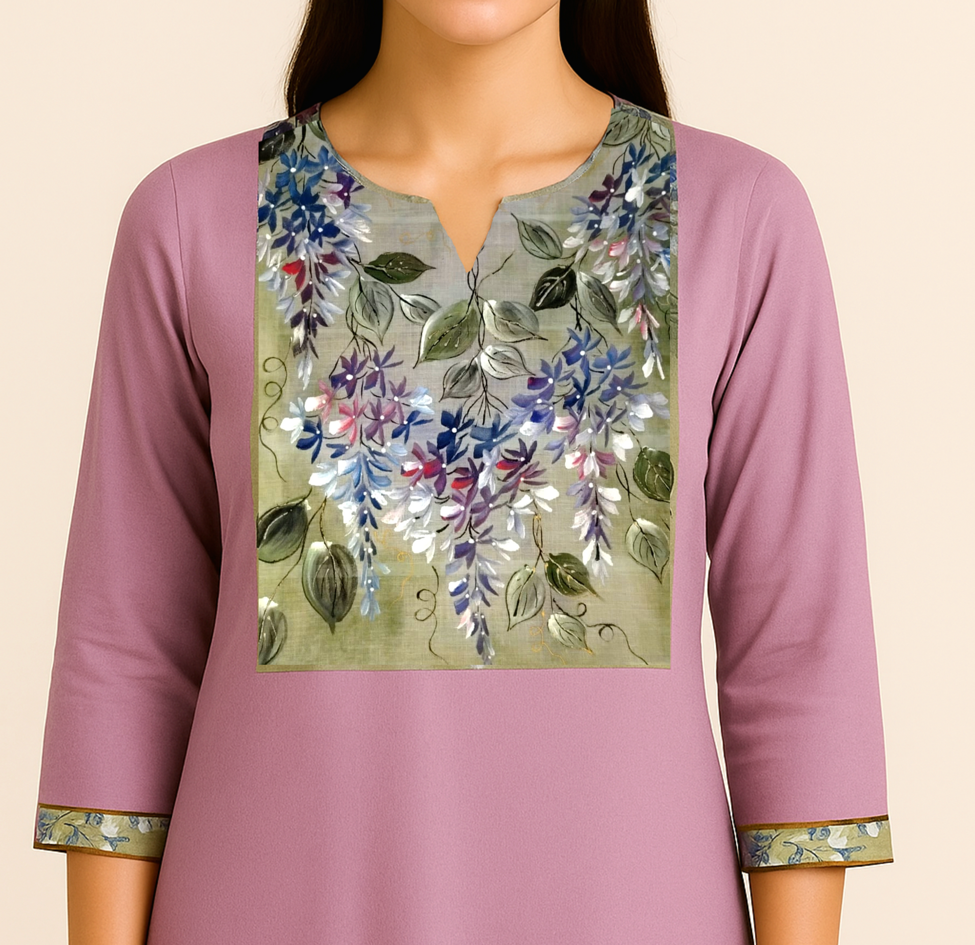Hand-painted fabric patches crafted on soft handloom cotton — easy to stitch, comfortable to wear, and perfectly durable on your fabric. These patches can be creatively attached to make each piece truly unique. Use them as a yoke for kurtis, on the lower portion or slit area of a kurti, at the back of a high-neck blouse, or anywhere your imagination takes you. Be creative and design your own special attire with these one-of-a-kind pieces of wearable art.
