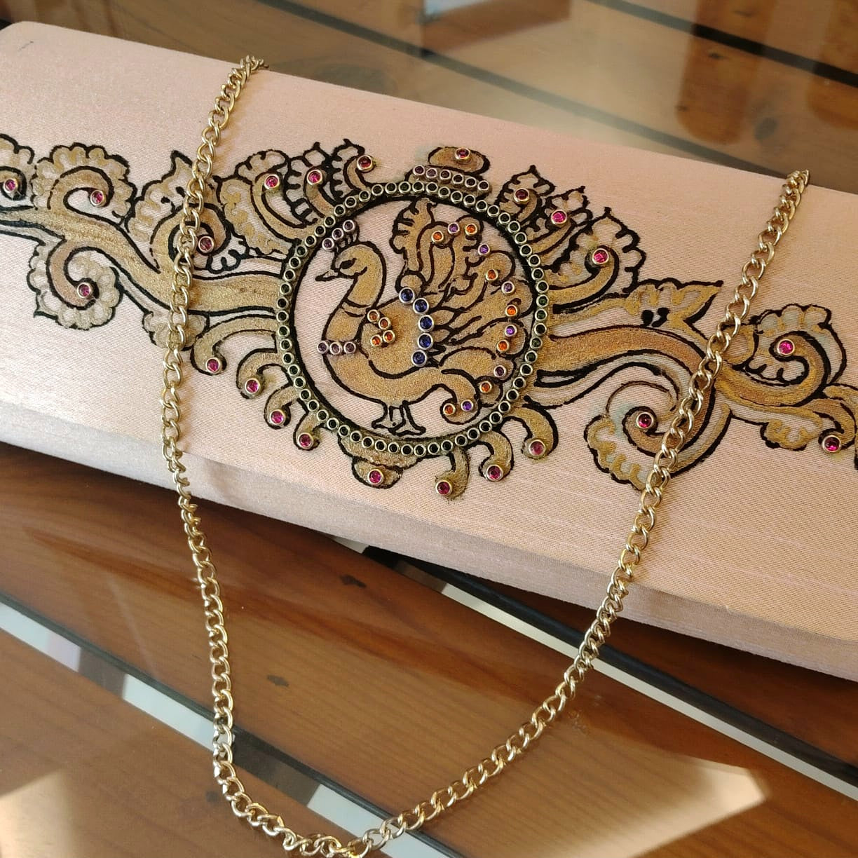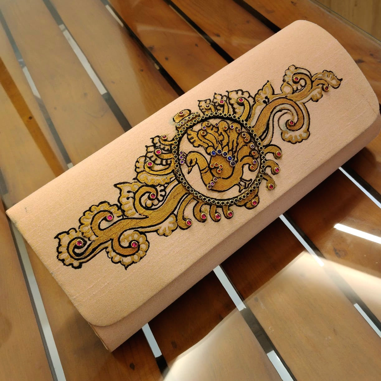 Tanjore Artistry On Hand-Painted Clutch