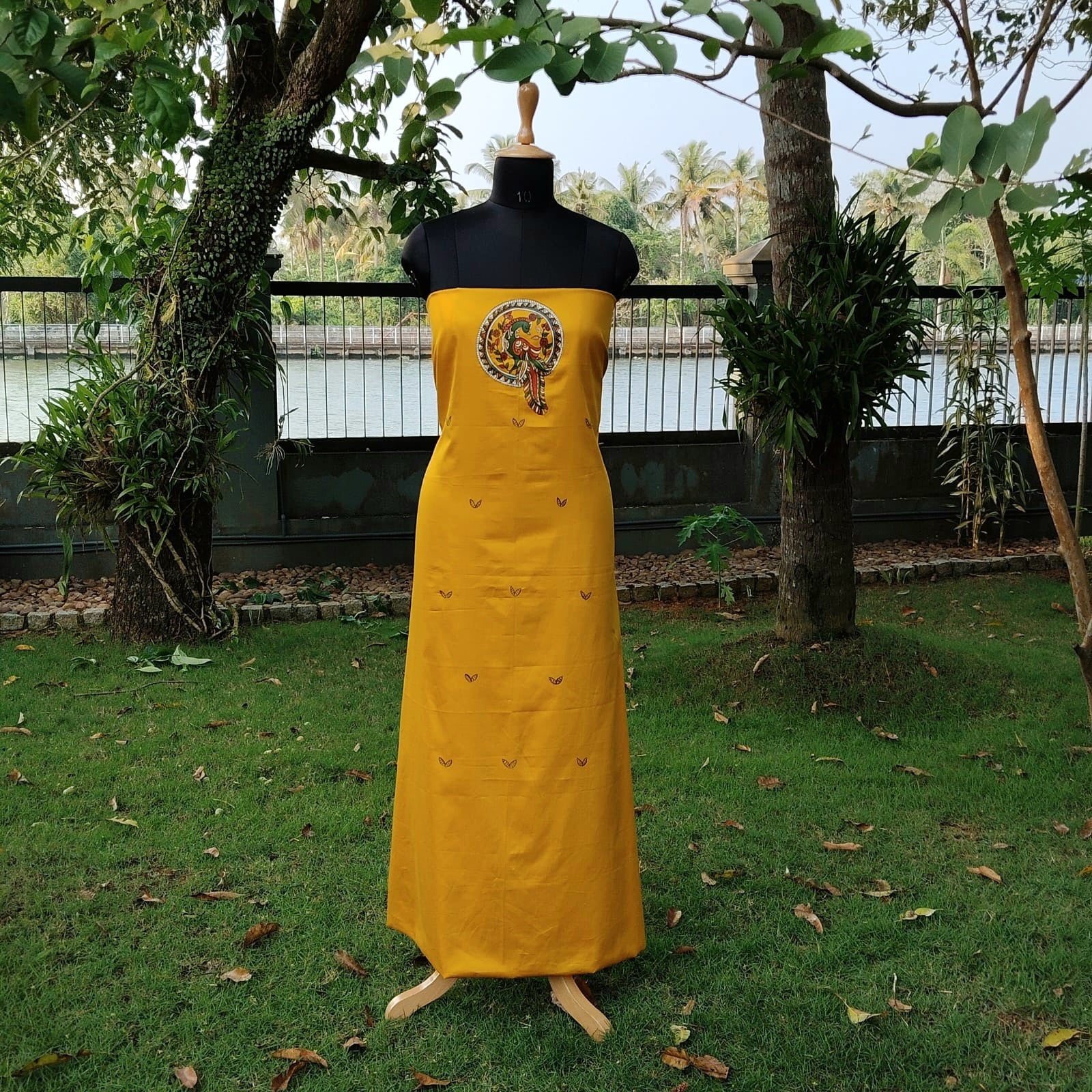 Hand-painted kurti in Kalamkari stye with work on front, back and sleeves. Fabric used is soft Russian Cotton. Ideal for summer.